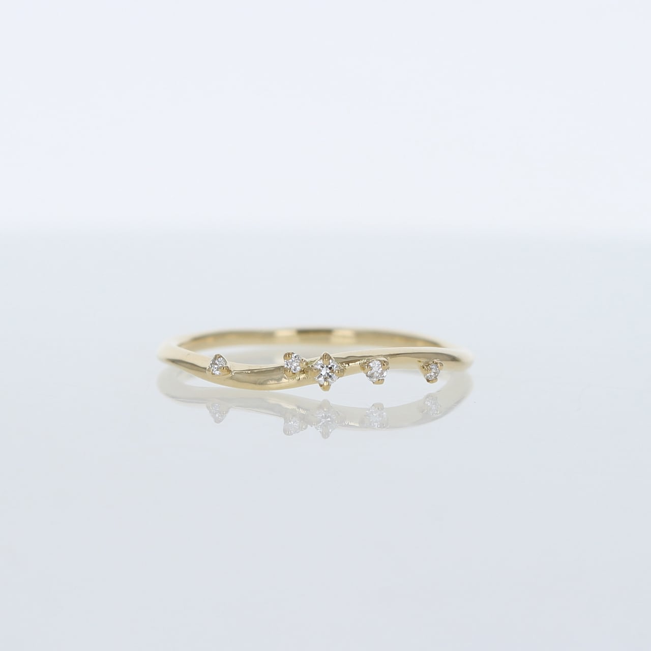 ランダムに配置されたダイヤモンドが、木漏れ日のように指元でまたたき、