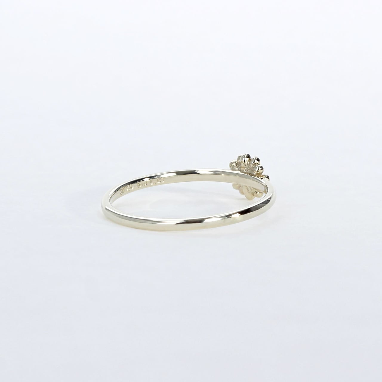花言葉は「希望」「純潔」「平和」など見た目の通りとても前向きな気持ちにさせてくれるものが多く、そんな花を指先に纏えばきっと気分も前向きにしてくれる。そんなリングです。